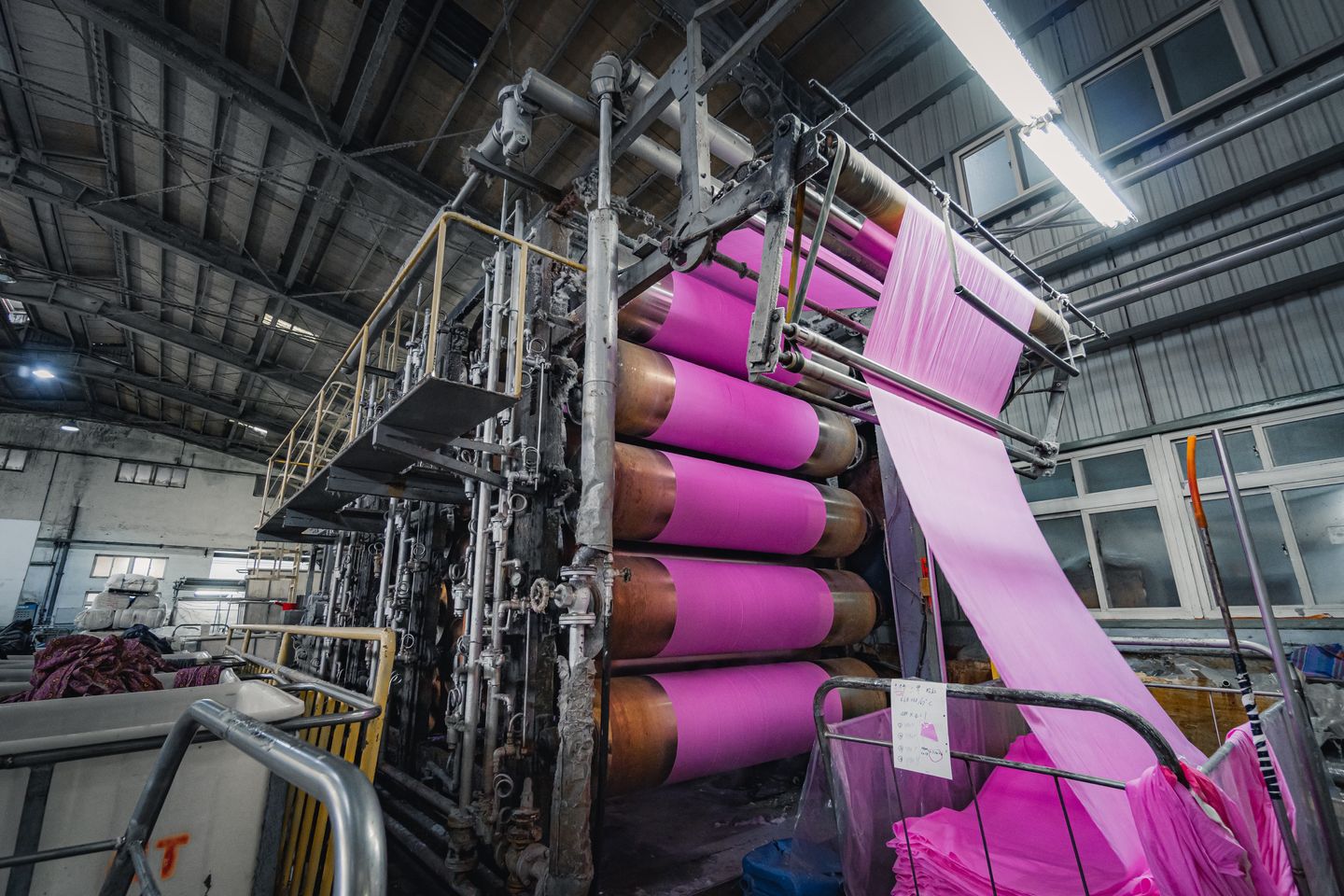 通過染料或顏料和紡織物發生物理或物理化學的結合,浸入一定溫度的染料水溶液中,使紡織物獲得鮮豔、均勻和堅牢色澤的加工過程;除了染色,還可進行精煉,其目的為去除胚布本身的雜質、油脂等等,以提升染色的品質。